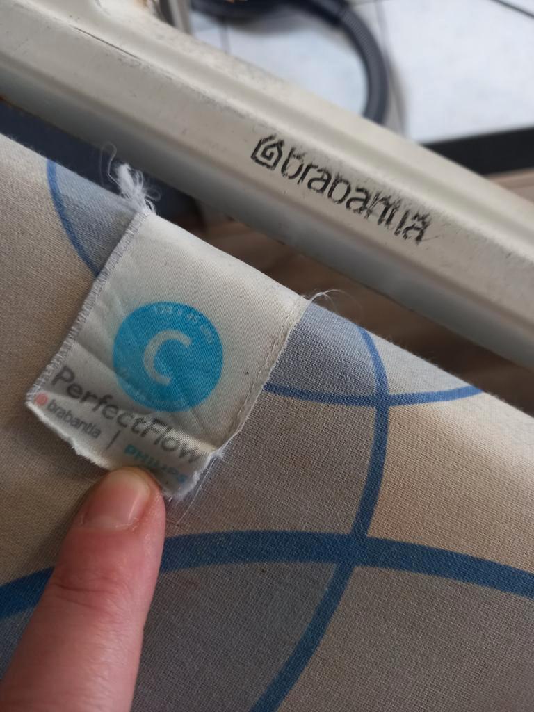Brabantia brede (45 cm) strijkplank. Plank verkeerd in goede staat. Alleen het gedeelte waar het strijkijzer staat, is roestig. Gratis op te halen