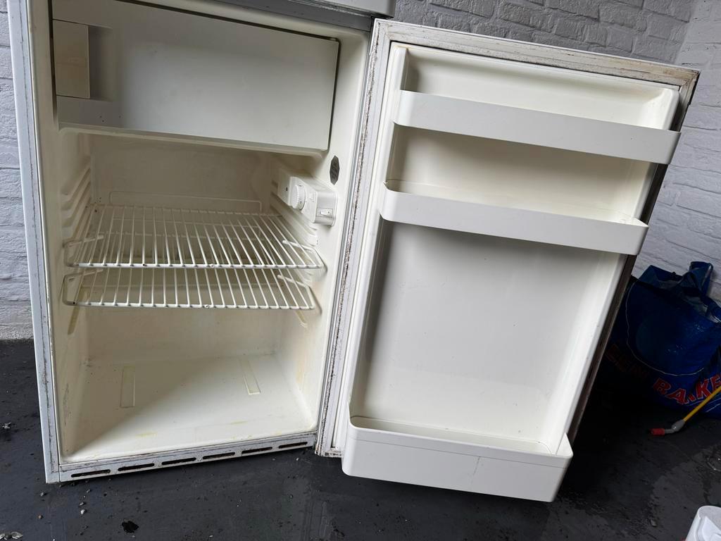 Siemens kt14l110 tafelmodel koelkast met vriesvak. De koelkast is gebruikt en heeft een schoonmaakbeurt nodig. Afmetingen: 85,5 cm hoog, 50 cm breed en 62 cm diep. Staat al een tijdje uit in de schuur