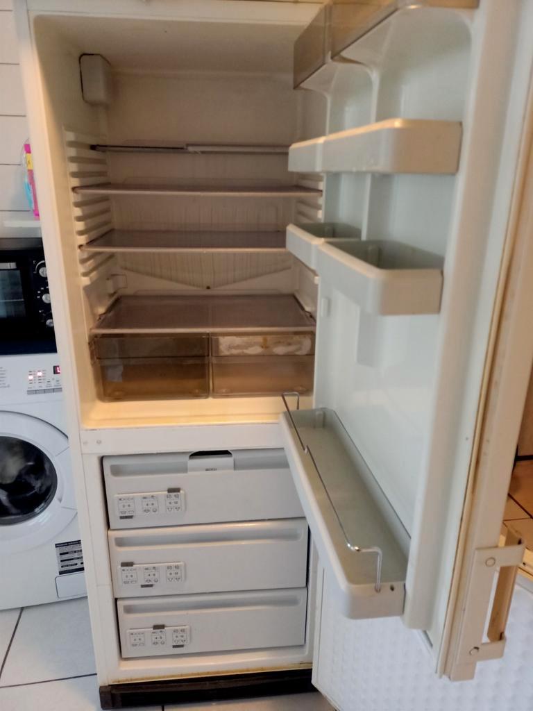 Gratis koel-vriescombinatie. De koelkast koelt en vriest niet meer goed, waarschijnlijk is de thermostaat defect. De hoogte is ongeveer 160 cm en de breedte ongeveer 48 cm, diep 59 cm. Zelf ophalen en