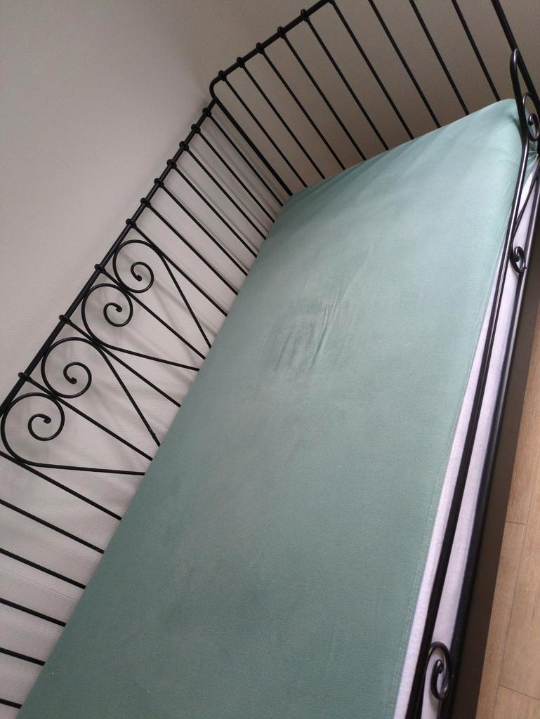 Gratis op te halen: een eenpersoonsbed met afmetingen 60 cm breed en 200 cm lang. Het bed is overcompleet en daarom gratis af te halen. Ideaal voor een kleine slaapkamer of logeerkamer.