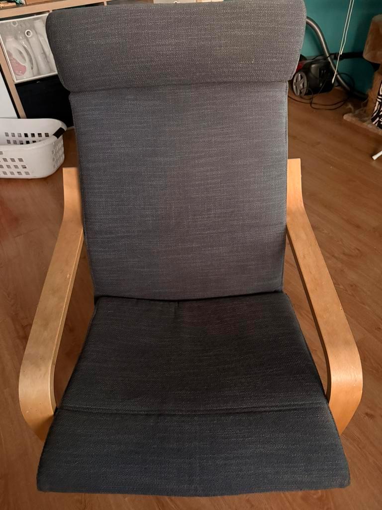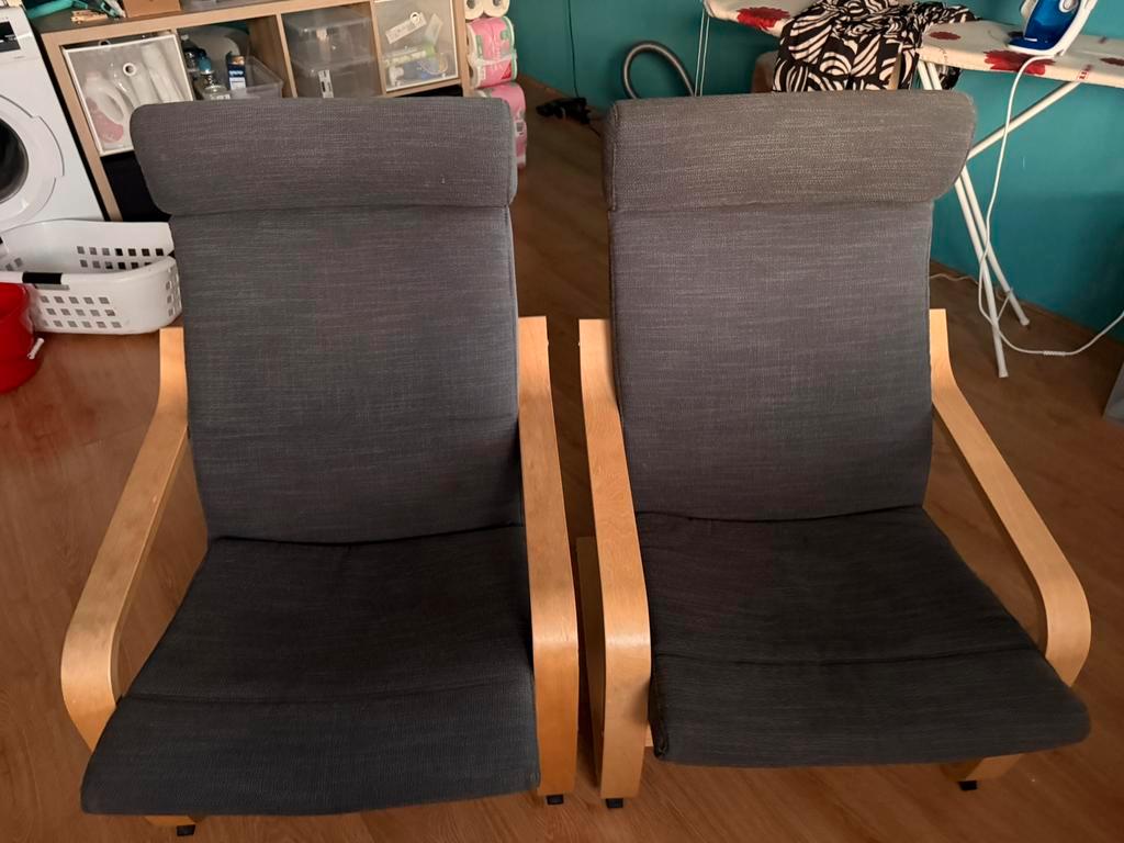 Omdat ik de inrichting heb aangepast, heb ik deze drie stoelen over. De onderstellen zijn nog goed. Bij ikea kun je nieuwe kussens erin kopen. De grijze kussens zijn goed, maar niet meer zo fris qua k