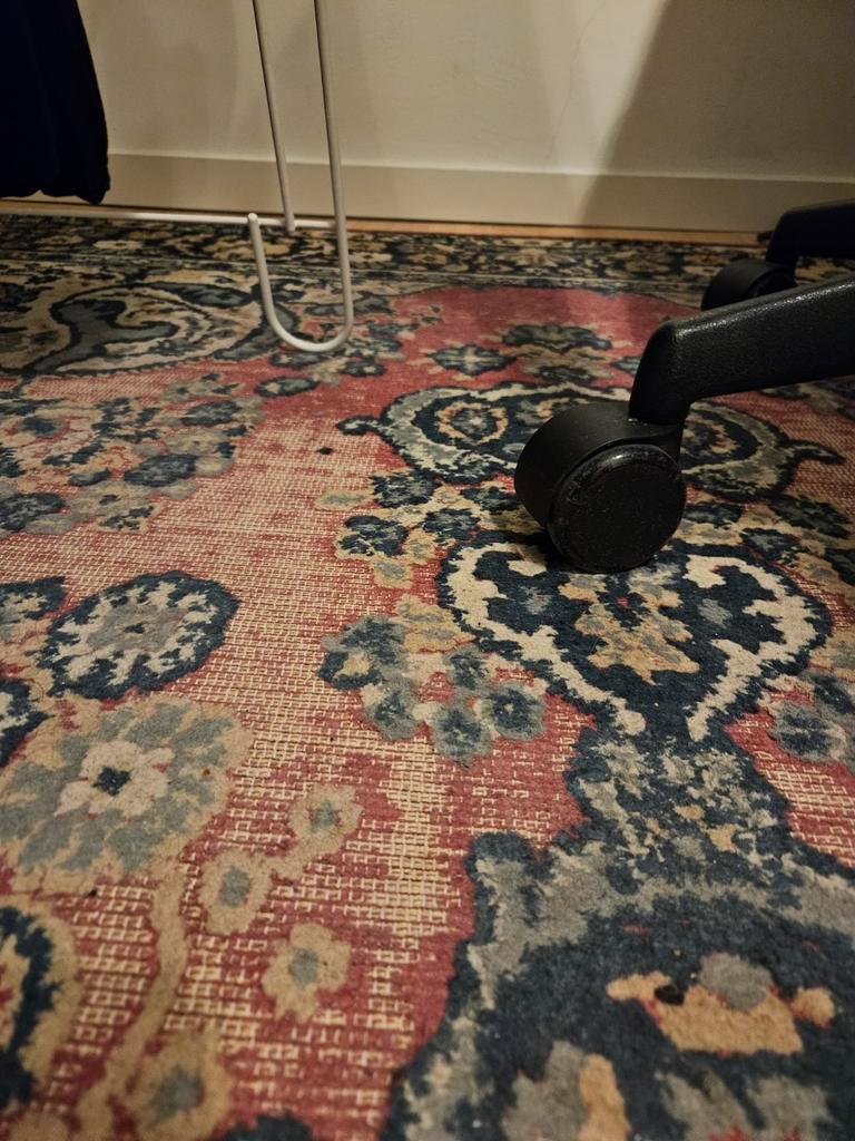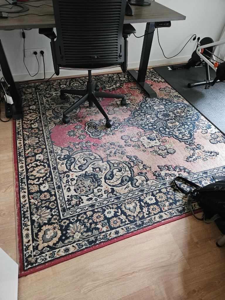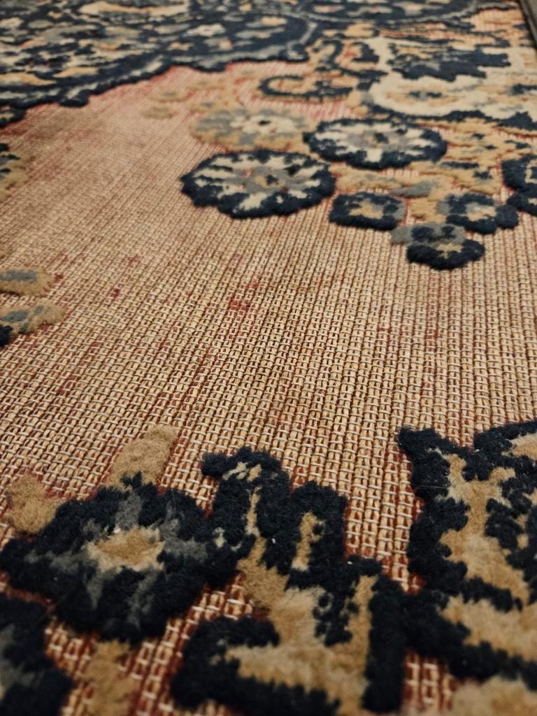 Versleten perzisch tapijt / vloerkleed: is lang in gebruik geweest en heeft duidelijke gebruikssporen, vooral in het midden van het kleed (kale plekken, zie foto''s). Afmeting is 200 cm x 290 cm. G