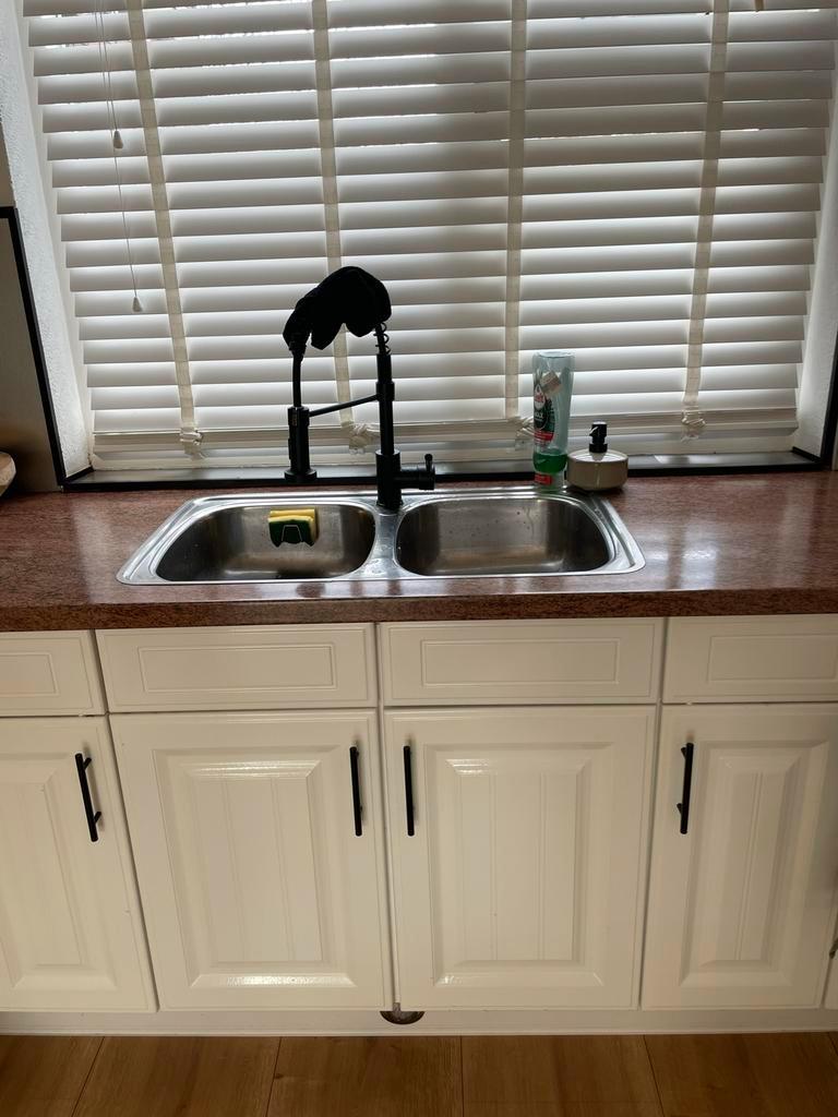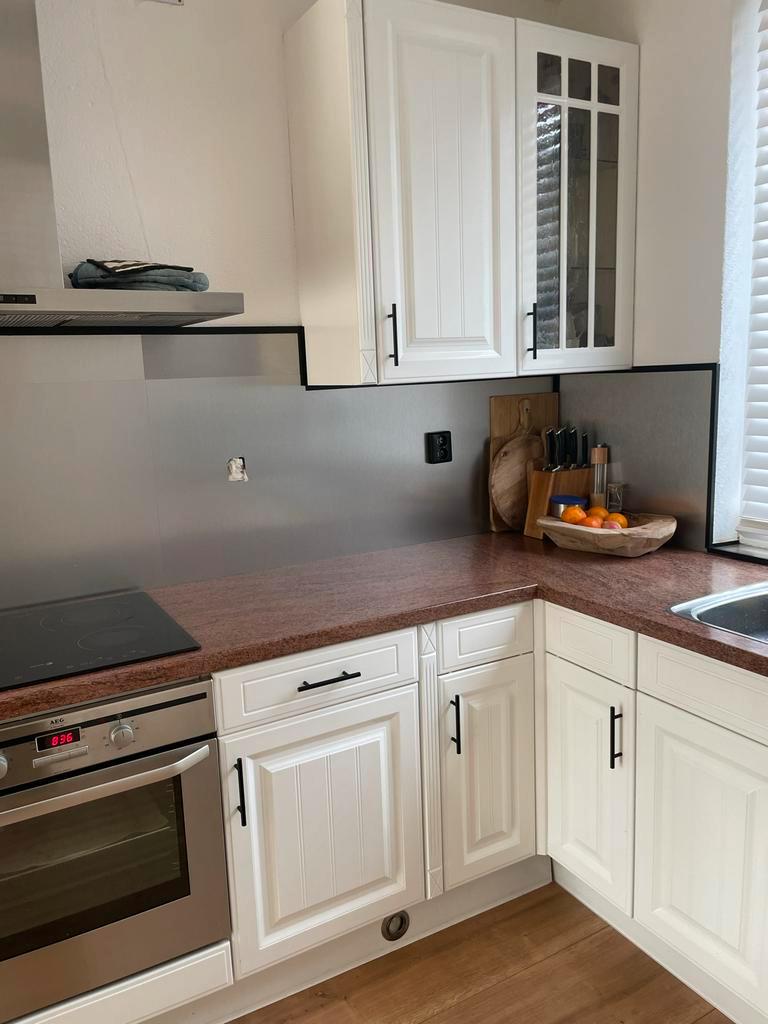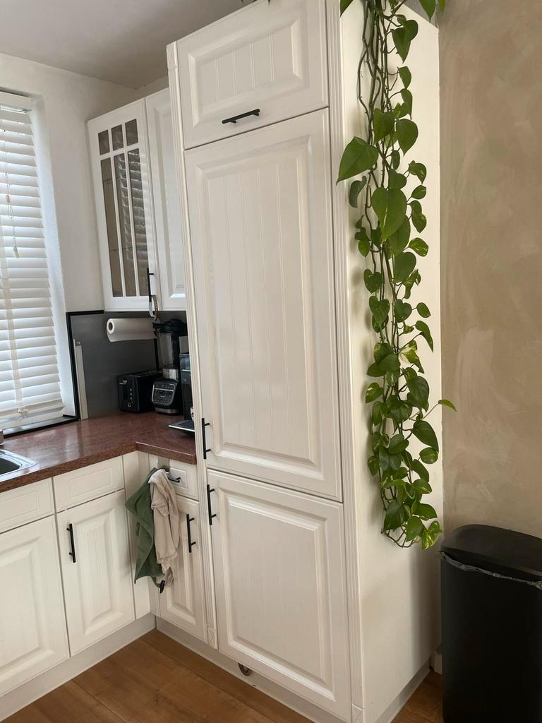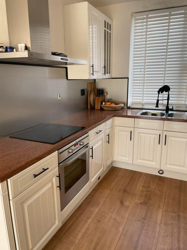 Volledige keuken in gebruikte staat (meeste gebruikssporen eventueel op te knappen) maar nog volledig functionerend. Gratis over te nemen: kastjes, frontjes, werkblad, plinten, spoelbak, kraan (paar m