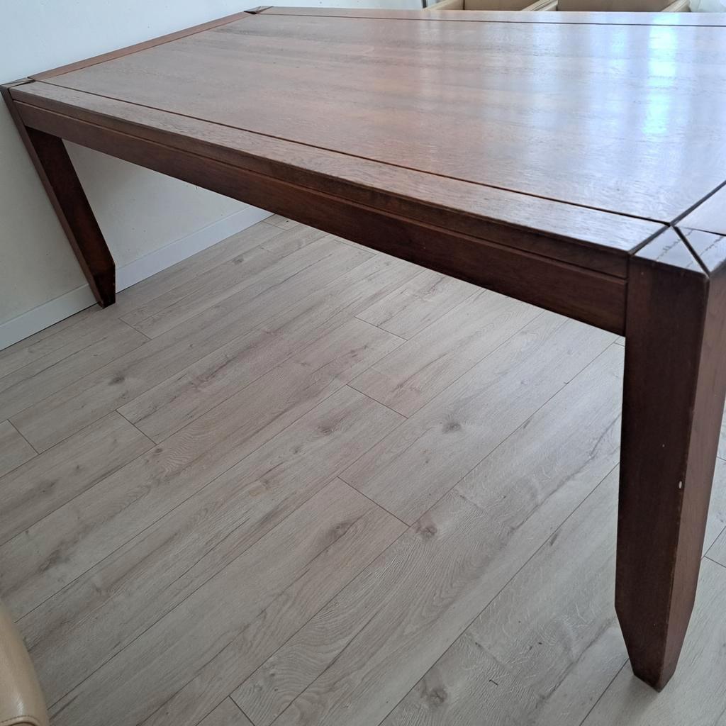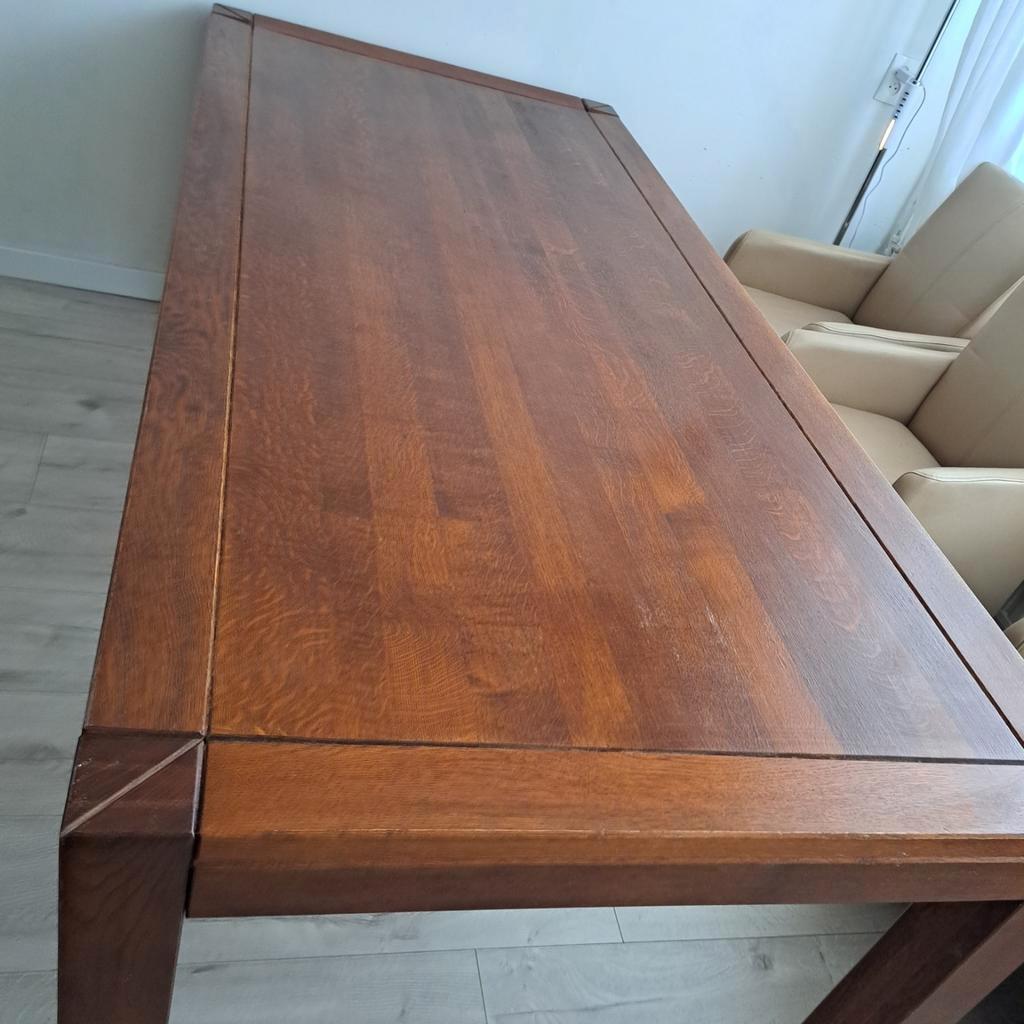 Mooie, massief kersenhouten eettafel met afmetingen 220 x 100 cm. Geschikt voor 6 tot 8 personen. De tafel is demontabel en verkeert in goede staat. Een tijdloze en kwalitatieve tafel voor een gezelli