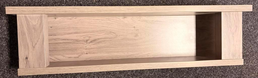 Mooie zware wandplank, hoorde bij de babykamer. Lichte beschadiging aan de bovenkant, zie foto’s. Ongeveer 1 meter lang gratis ophalen