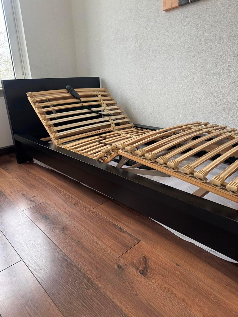 Een comfortabel eenpersoonsbed, elektrisch verstelbaar voor optimale ondersteuning. Inclusief matras (ligt onder het bed). Ideaal voor mensen die extra comfort en gemak zoeken. Het bed is in goede sta