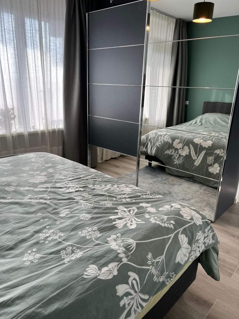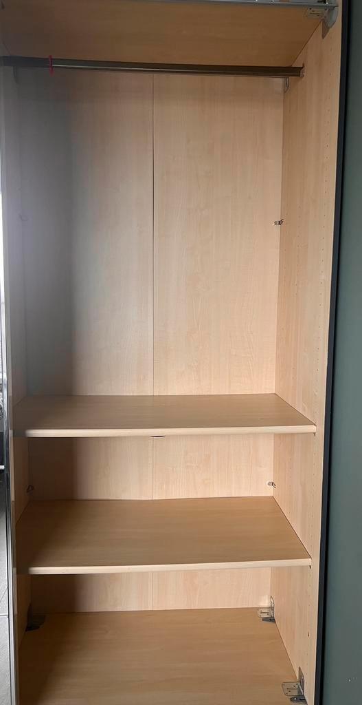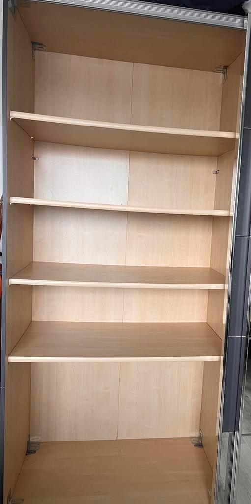 Kledingkast met schuifdeuren en verstelbare spiegels. Schuifdeuren met spiegels: de spiegelpanelen zijn flexibel en kunnen naar eigen wens op de deuren worden geplaatst/verschoven. • ruimte: het