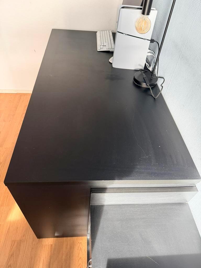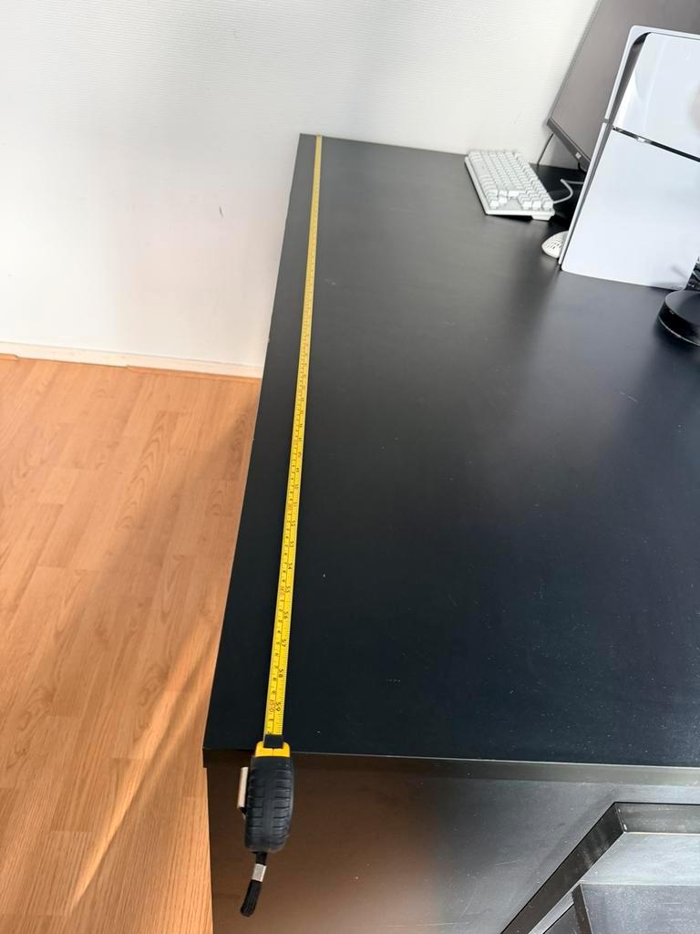 Strak, zwart bureau met afmetingen 153 cm breed, 75 cm diep en 72 cm hoog. Ideaal voor thuiswerken of studeren. Het bureau is in gebruikte staat, maar nog prima te gebruiken. Stevig en functioneel. La