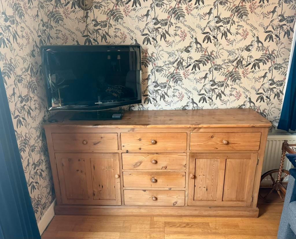 Houten meubels waaronder mooie eethoek , salontafel en dressoir. Meubels op korte termijn gratis af te halen. Dressoir moet van 1e verdieping boven woning via raam worden verhuisd.