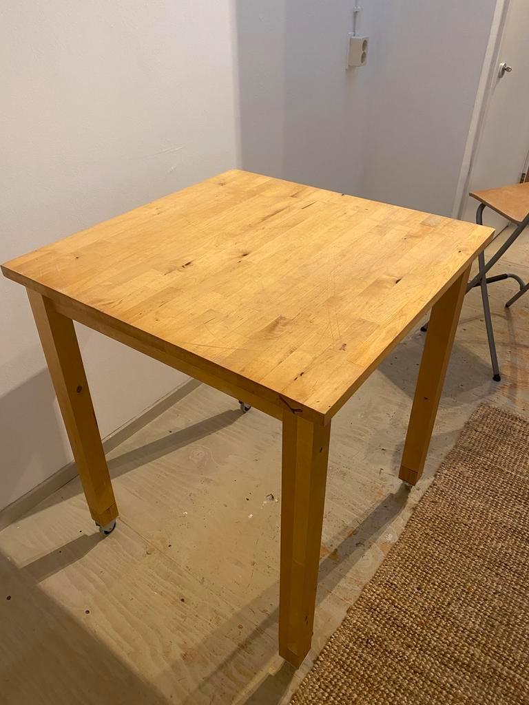 Ophalen in nijmegen oost. Leuke gebruikte tafel ideaal voor studio of studentenkamer. Met wieltjes waardoor makkelijk verplaatsbaar maar die er evt ook afgehaald kunnen worden. 74 Cm x 74 cm 87 cm hoo
