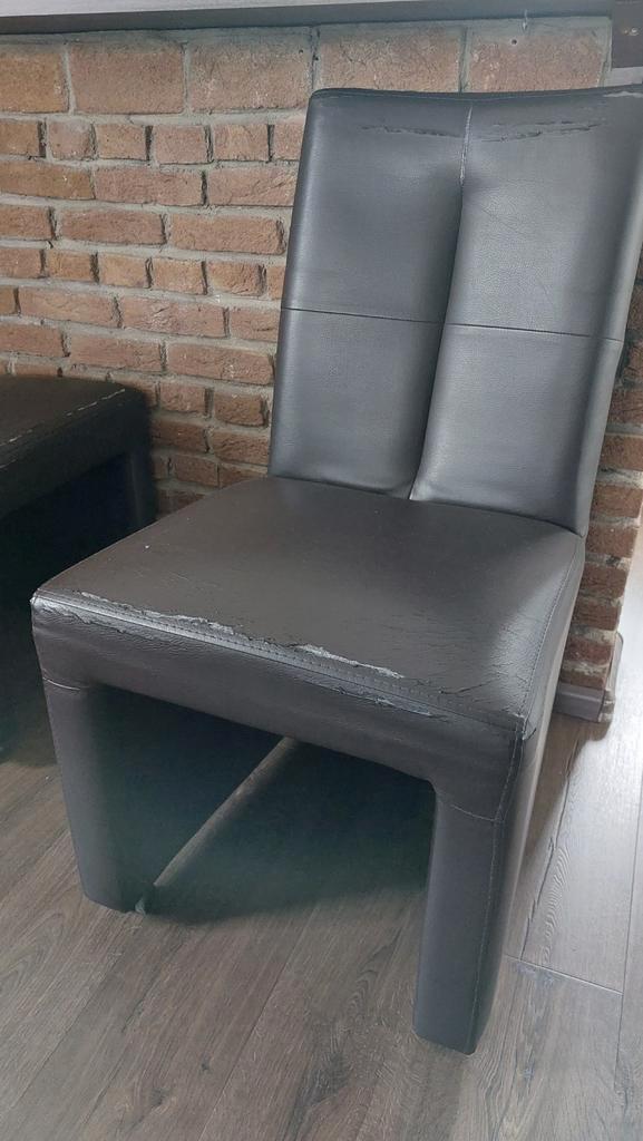 Gratis af te halen, deze degelijke piet klerx stoelen. De lederen bekleding is versleten, maar ze zitten nog prima. Met een mooie hoes, nog goed te gebruiken.