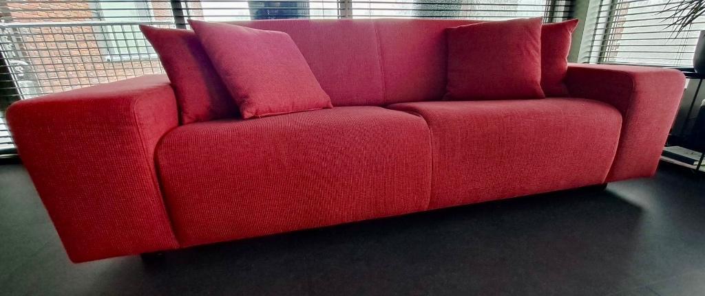 1 x 2,5 zitbank, 1 x 1,5 zitbank (love seat), rode stof, 6 kussentjes 1 x relaxstoel 1 x keukenstoel alles is gebruikt maar in goede staat! Gratis op te halen