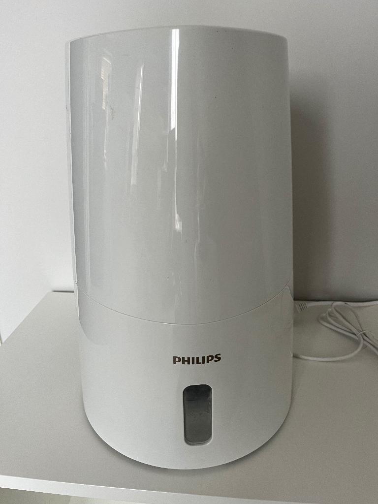 Philips luchtbevochteraar. Zorgt ervoor dat de luchtvochtigheid in een ruimte altijd op het juiste niveau is. De luchtbevochteraar is gebruikt, maar doet het nog goed. Hoogte van het apparaat is 37 cm
