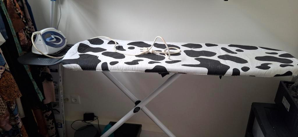 Complete set: strijkijzer en strijkplank in zo goed als nieuwe staat. Extra hoge strijkplank. Ideaal voor snel en efficiënt strijken. Strijkijzer met snoer. Alleen ophalen