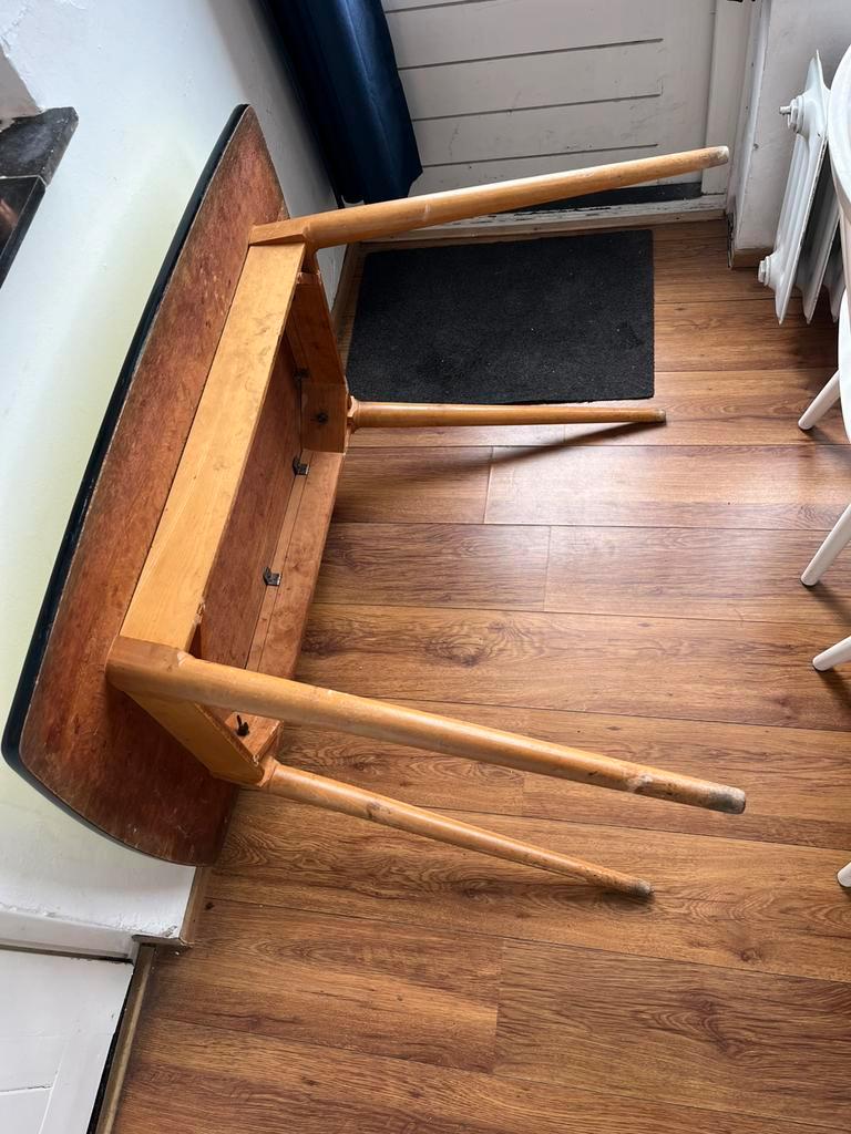 Houten keukentafel/kleine eettafel blad is 110cm bij 80cm hoogte 74 cm kleine schades aan de lak