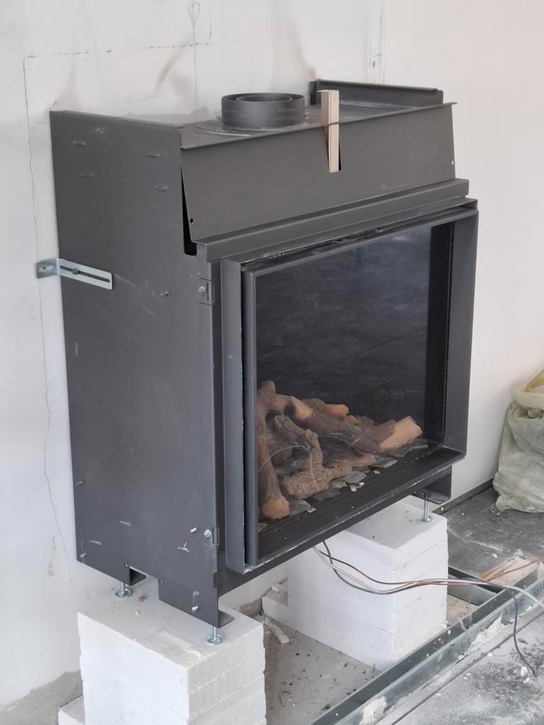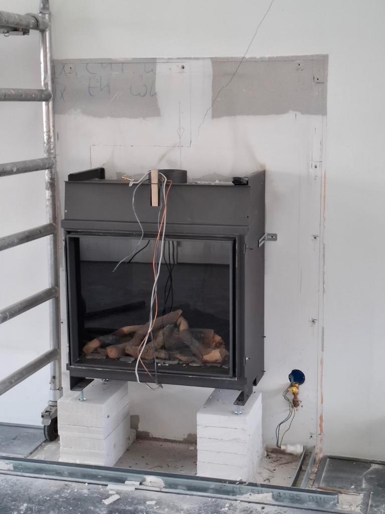 Gaskachel met zwart rookkanaal. Gratis af te halen.