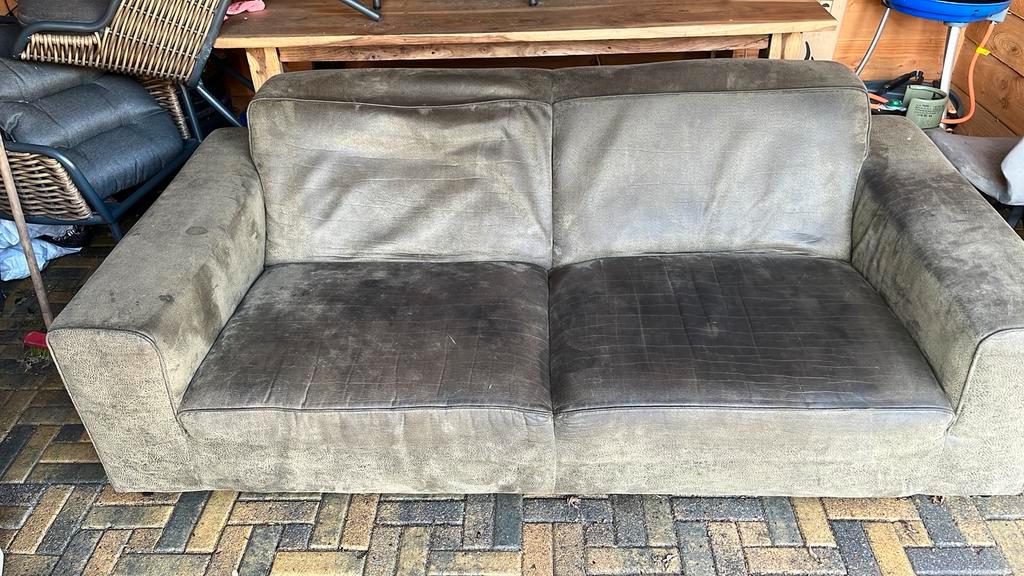 Gratis bank ivm nieuwe bank. Stof is goede staat. Wel schoonmaak beurt nodig en rugkussens kunnen wat extra inhoud gebruiken.