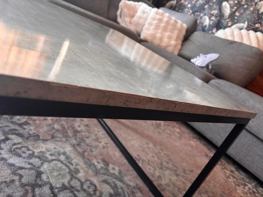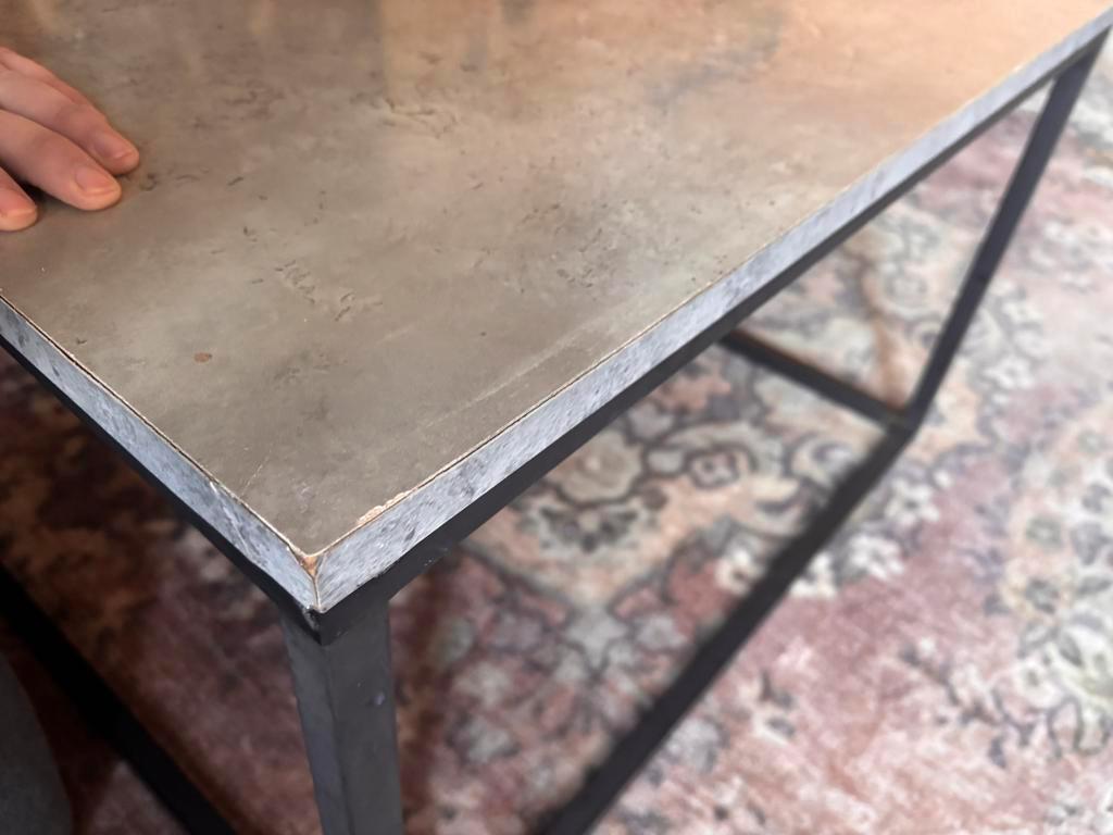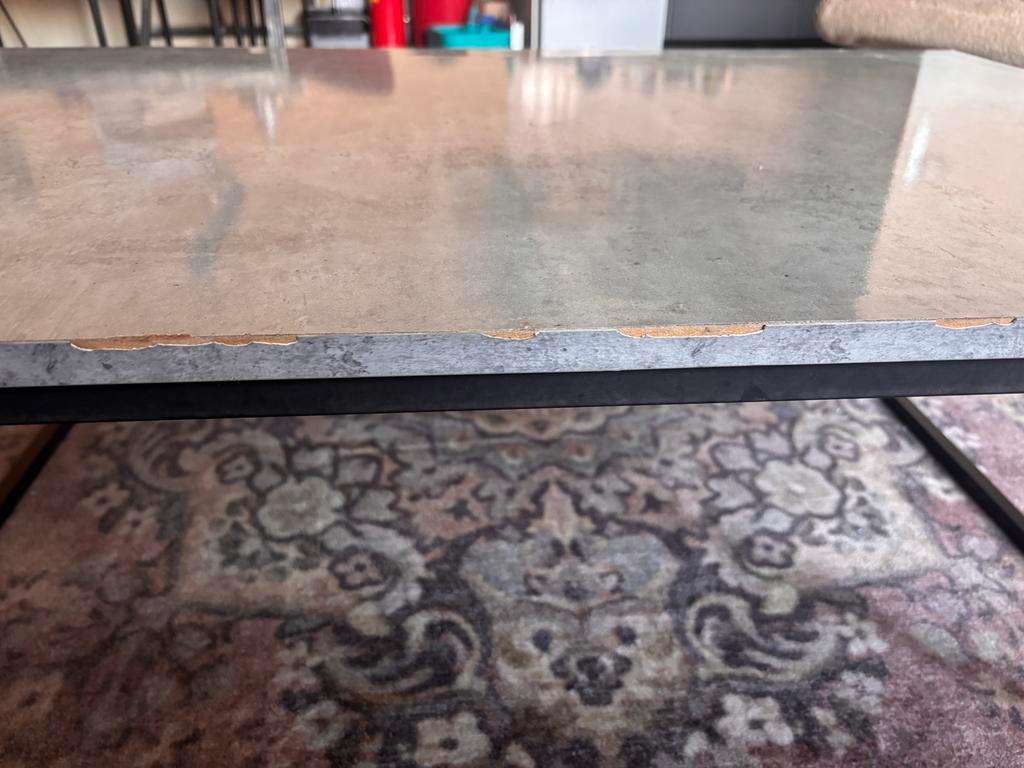 Gratis op te halen salontafel. De tafel is stevig, maar heeft beschadigingen aan de randen. Afmetingen: 115 cm lengte, 75 cm breedte, 45 cm hoogte.