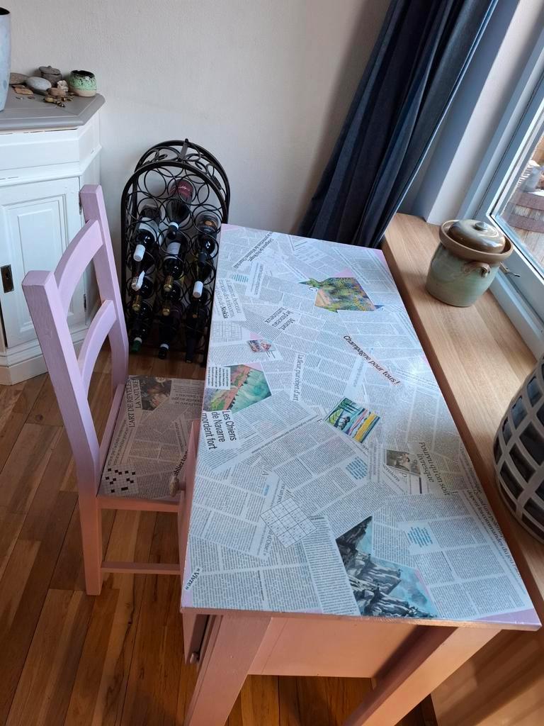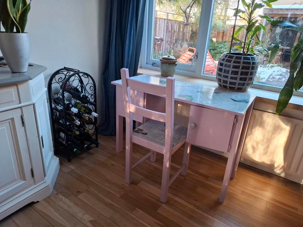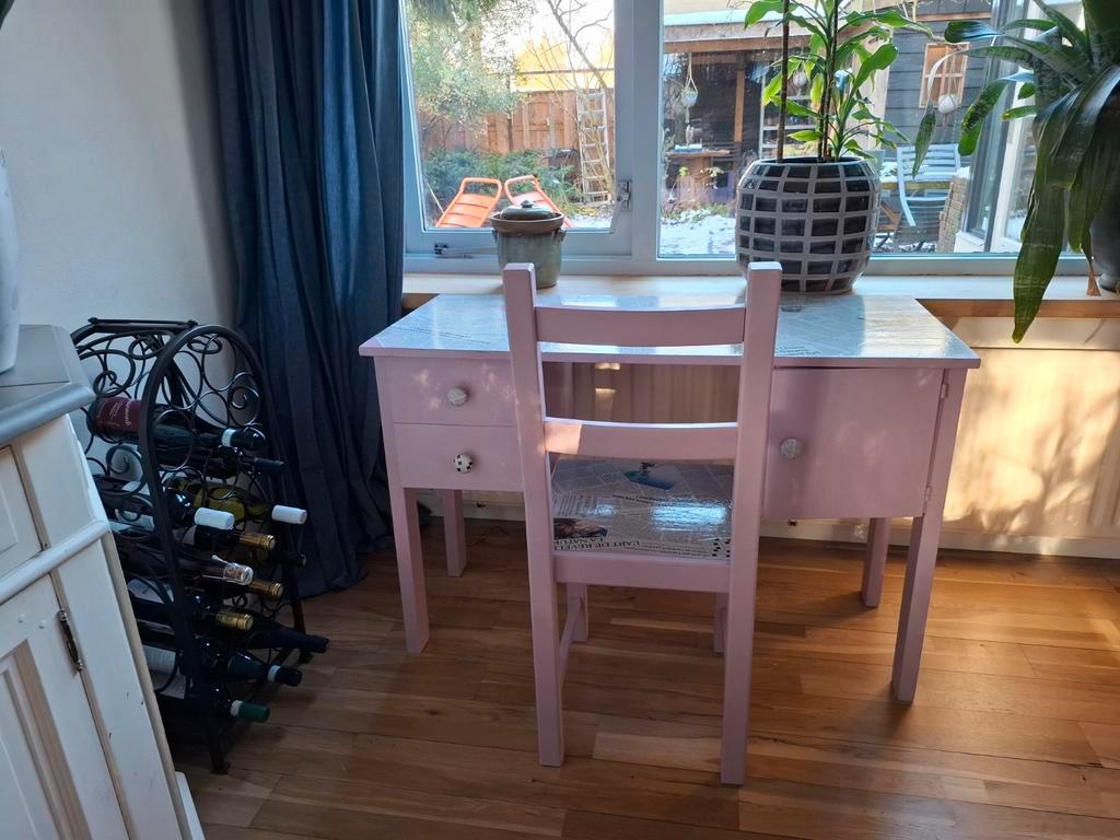 Uniek zelfgemaakt bureau en stoel. Gratis op te halen.