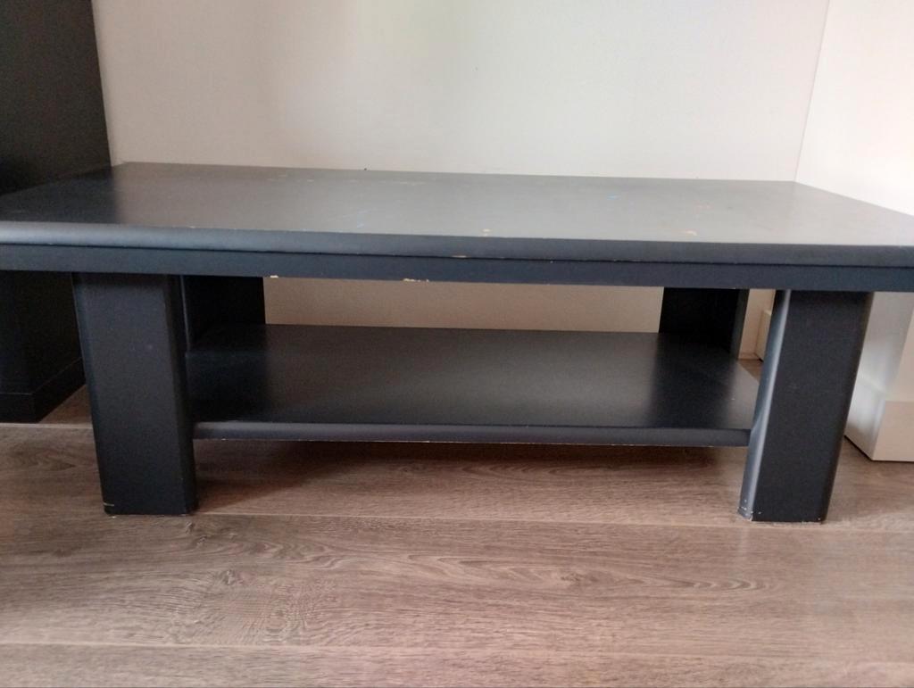 Stevige salontafel. Laatste jaren gebruikt als knutseltafel. Kan een nieuwe verflaag gebruiken. 60 X 121 x h40 cm. Gratis op te halen.