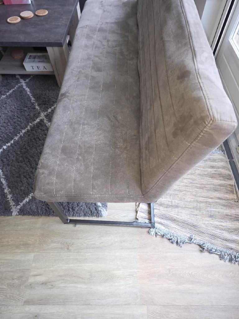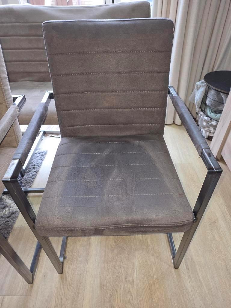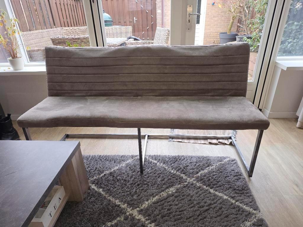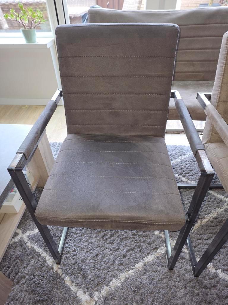 3 stoelen en 1 eetbank gratis af te halen vanwege nieuwe stoelen die minder puntig zijn. De rugleuning zit aan één kant los. Je kunt er nog op zitten, maar de rugleuning is daardoor minder stevig en k