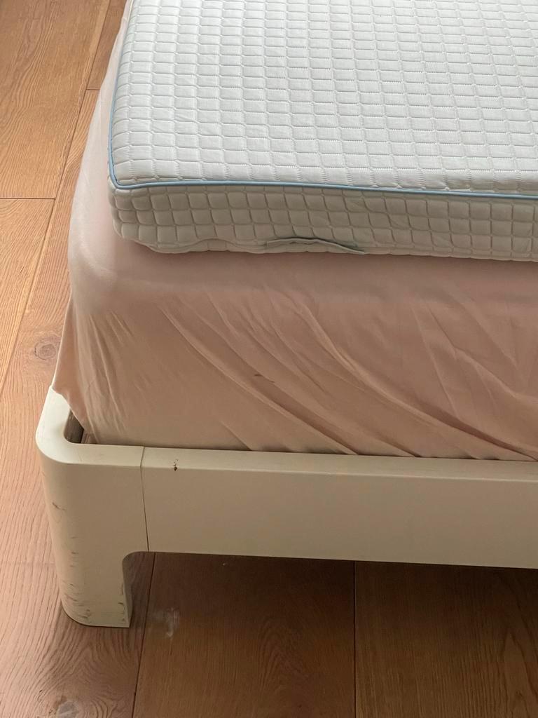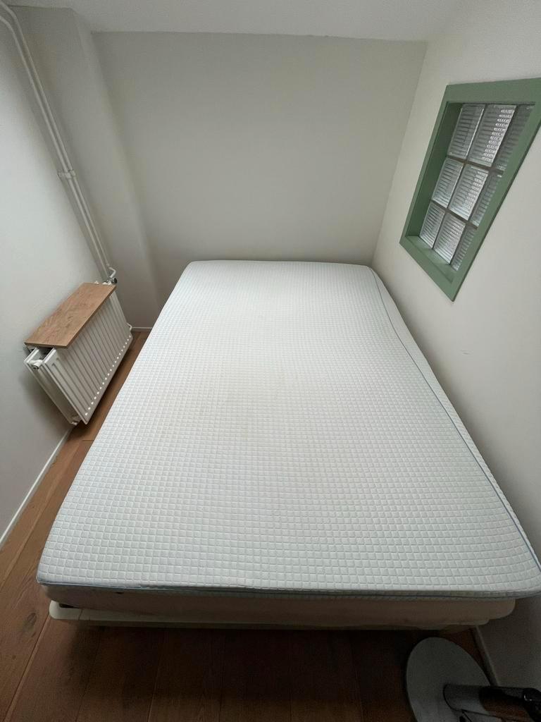 Compleet bed gratis ophalen, bestaande uit een bedframe, lattenbodems, een matras en een topper. Het bed is 140 cm breed en 200 cm lang. Matras is wat ouder maar van goeie kwaliteit en heb een half ja