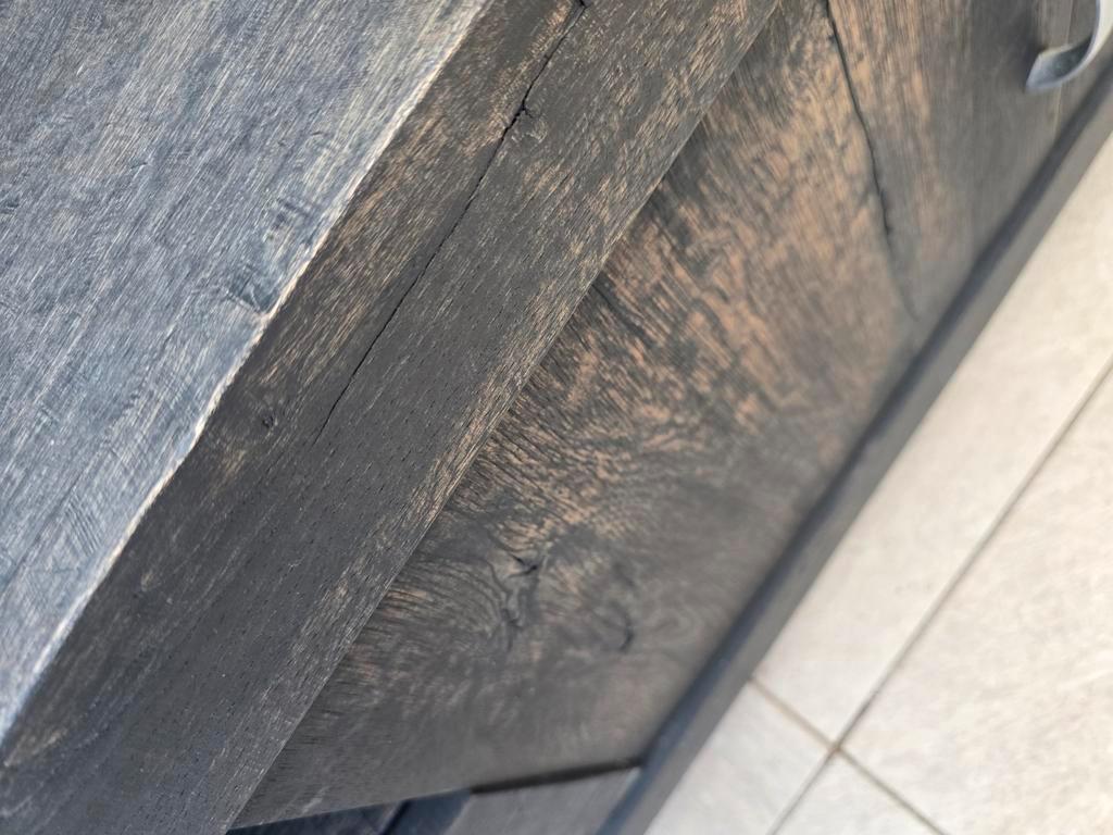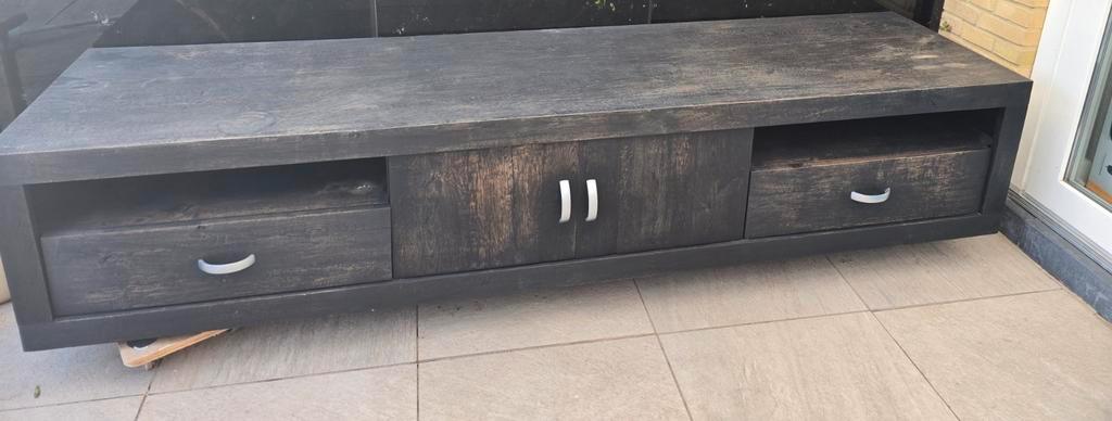 Een prachtige dressoir / tv meubel van massief eiken hout met lades en deuren van de exclusieve meubelzaak ambiance in naaldwijk. Ideaal voor het opbergen van spullen in de woonkamer of slaapkamer. De