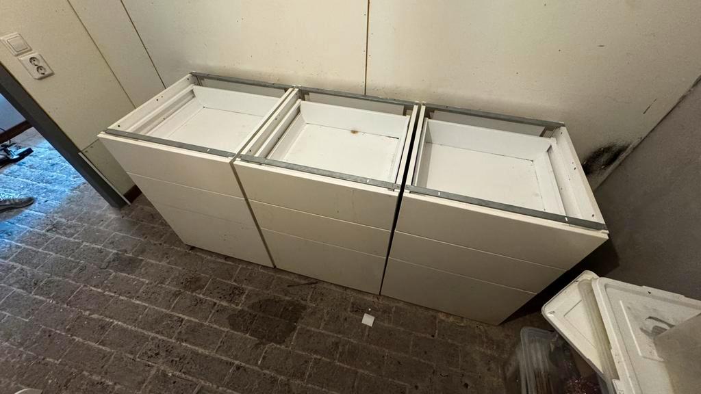 3 keukenkasten van metod met elk drie lades. Zonder werkblad en zonder poten. In prima staat, moeten alleen even worden schoongemaakt. 60X60x80cm