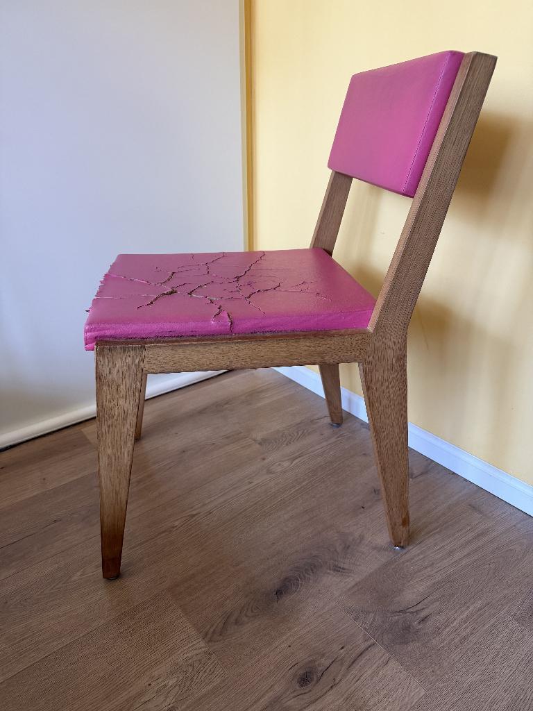 Twee prachtige roze scandinavische stoelen. De bekleding is helaas beschadigd. Misschien is iemand handig en kan ze opknappen. Gratis op te halen in de spaarndammerbuurt. Ze zitten nog heel comfortabe